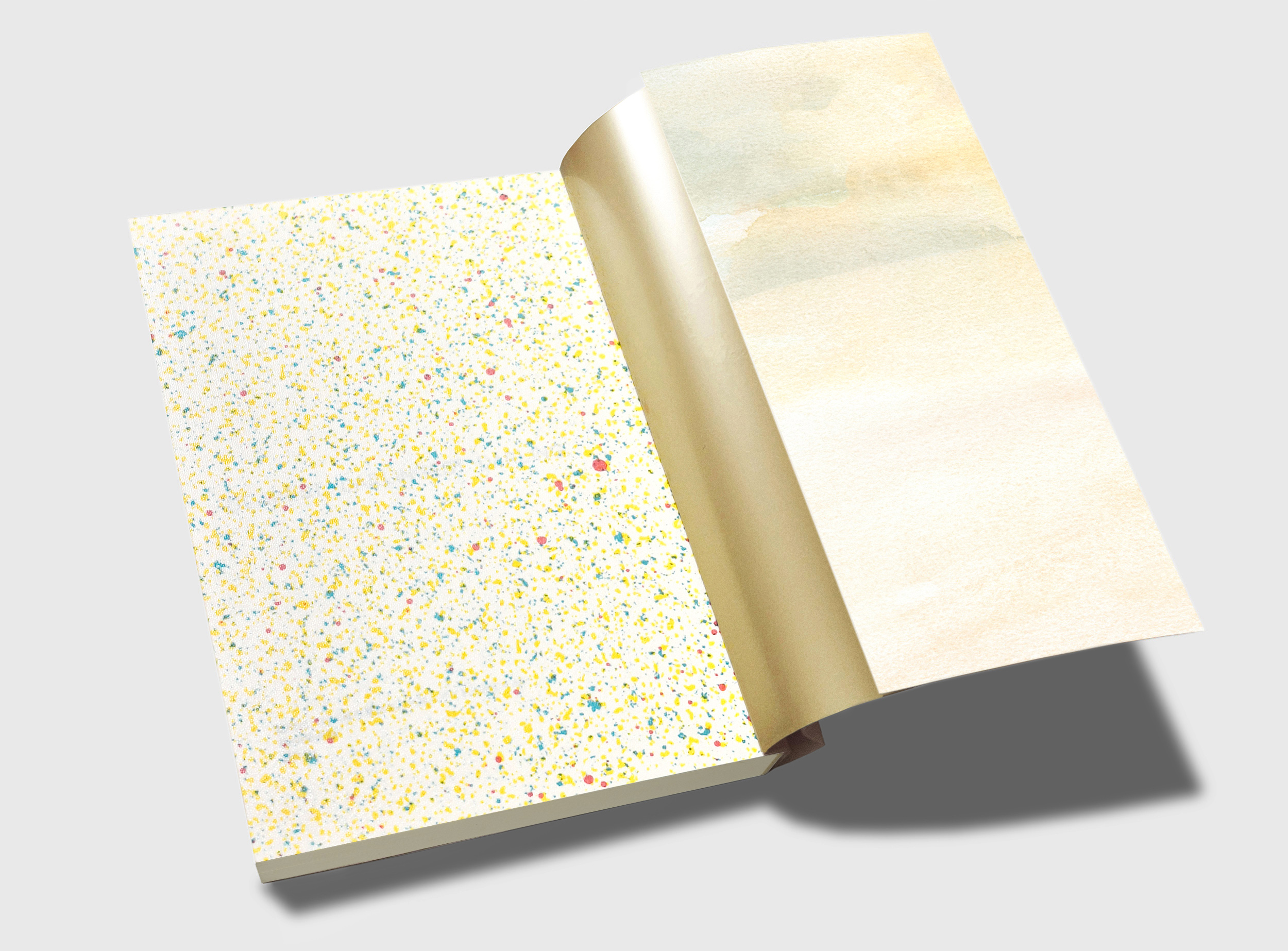 さらに表紙を開くと、遊び紙の彩りがいっそう広がり、続いて「ファンタスゴールド」の上品な光沢が現れます。