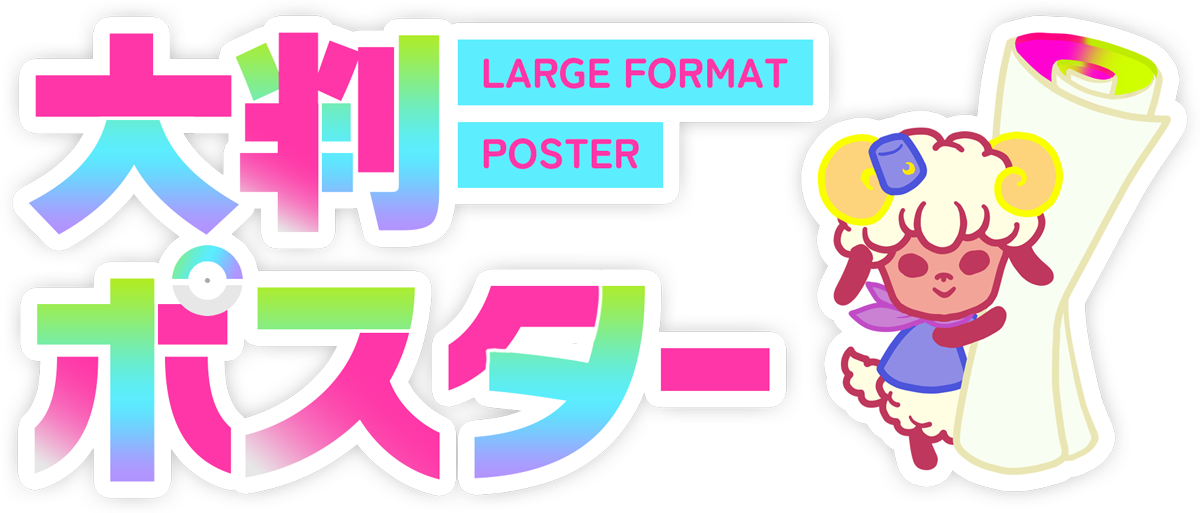 上記サイズでご入稿いただいたデータを、弊社にて拡大処理を行い、大判ポスターとして印刷いたします。