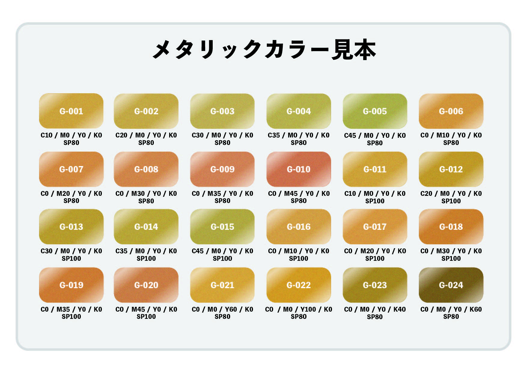 また、CMYKと重ねることでメタリックな質感も再現が可能です。
