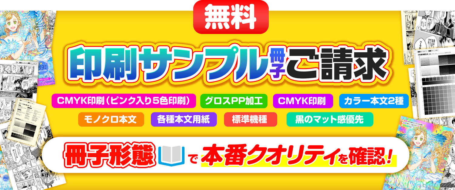 基本の表紙・本文用紙と印刷の質感をご確認いただける、無料のサンプル冊子をご用意しました。